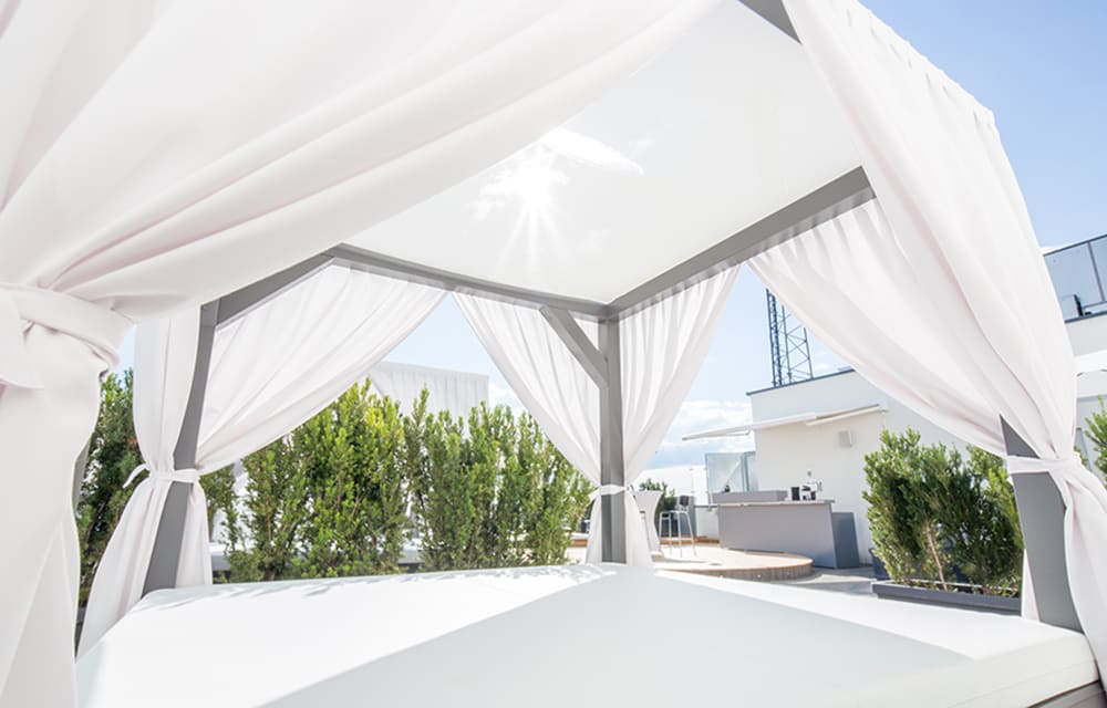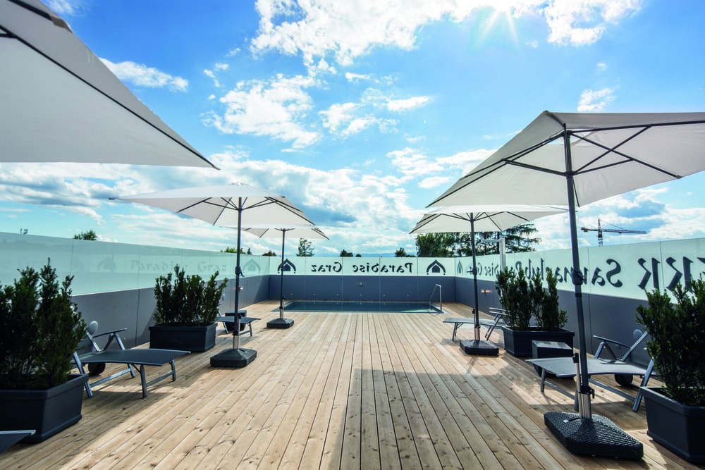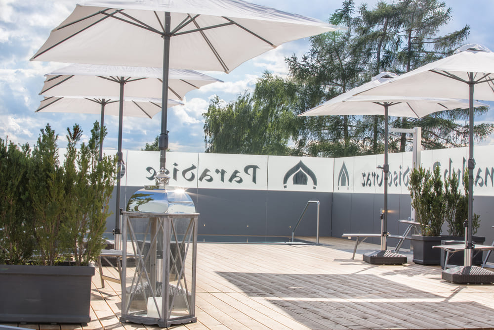 Schlüpfen Sie in den Bademantel und betreten Sie die Oase